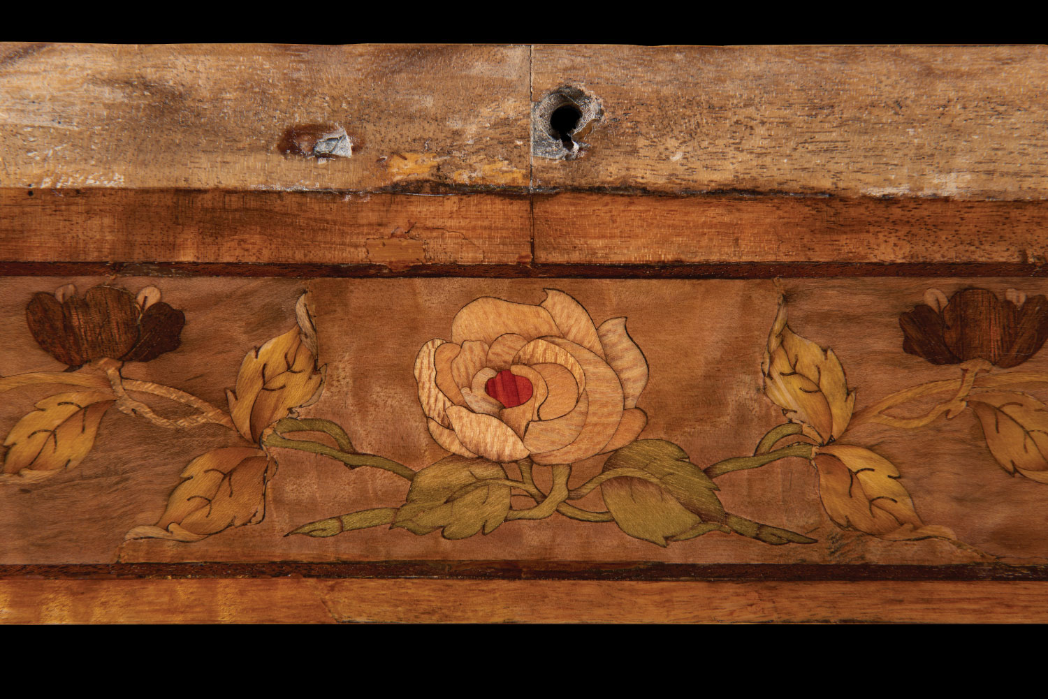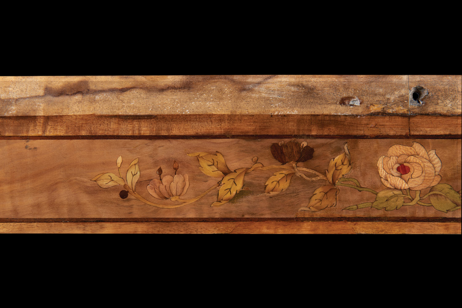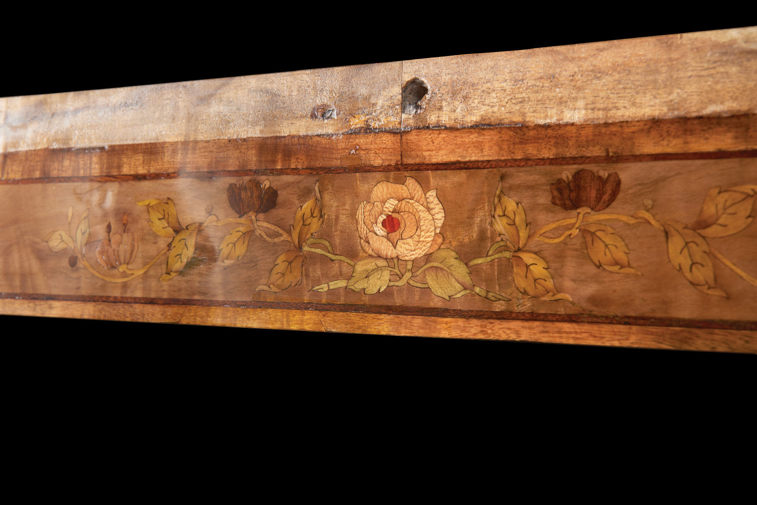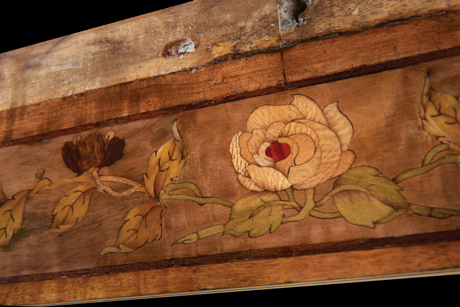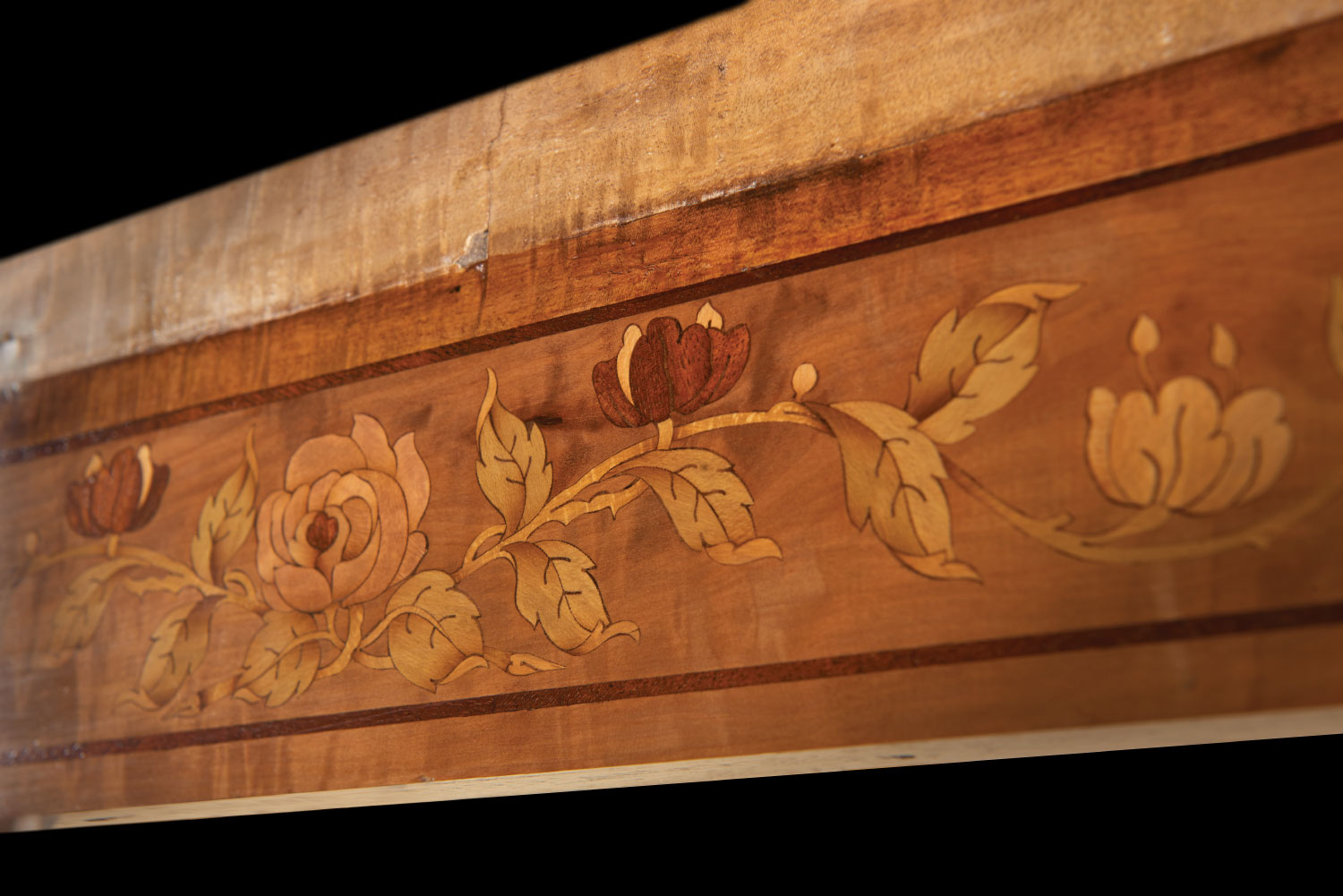 Wheathills has been commissioned to restore the marquetry damaged by the water ingress and to create show panels for fundraising to enable the full restoration of this wonderful example of a Pullman train.
