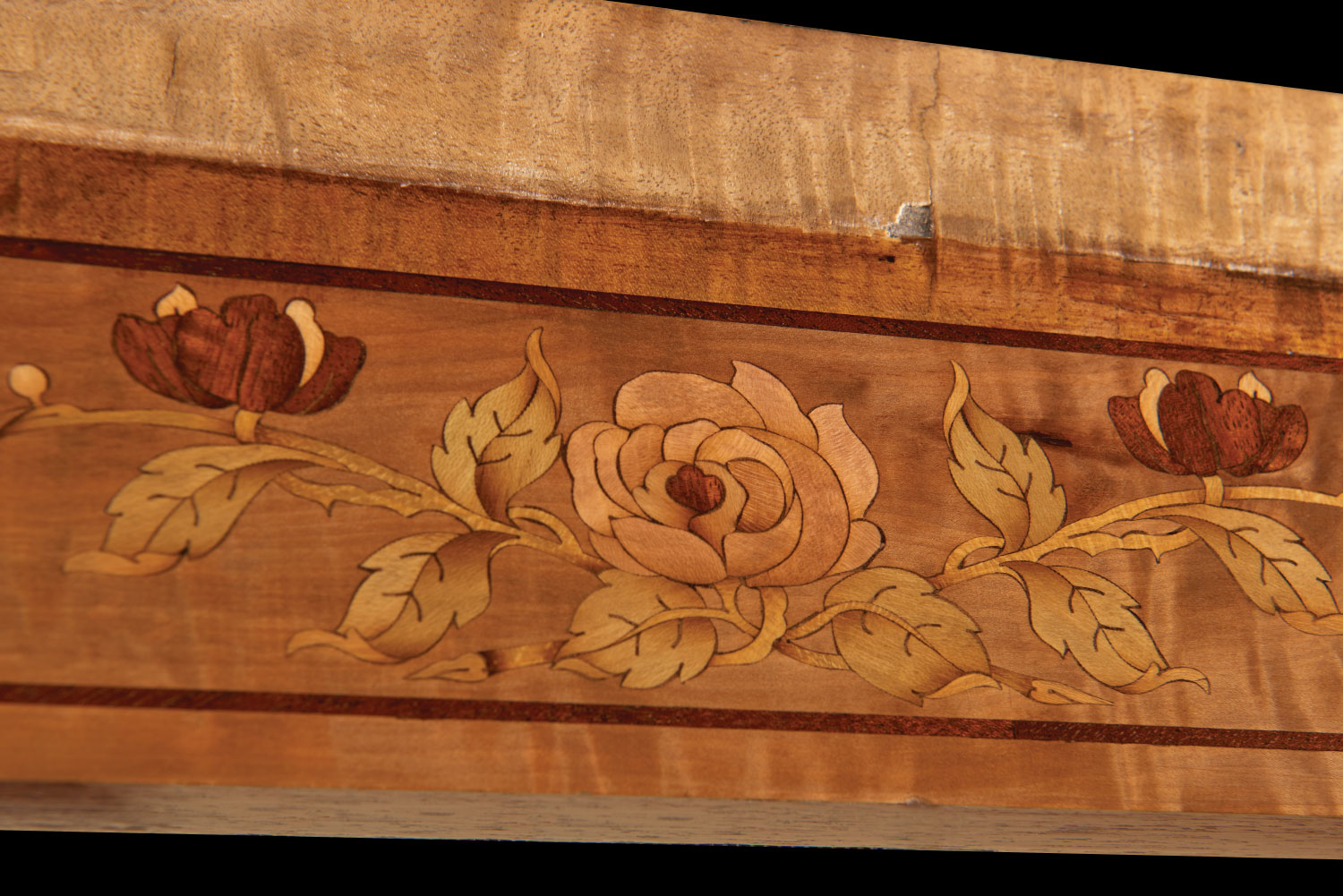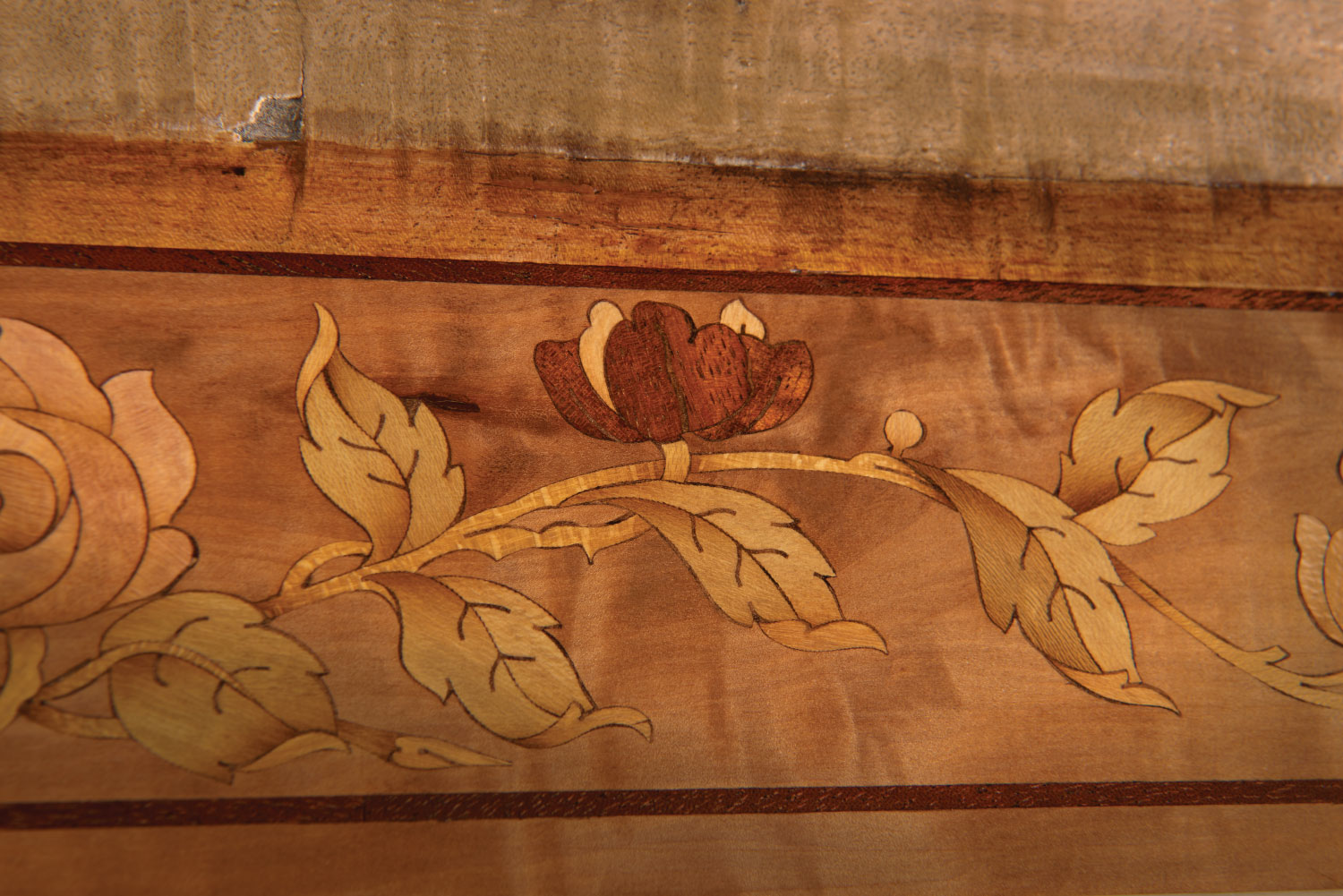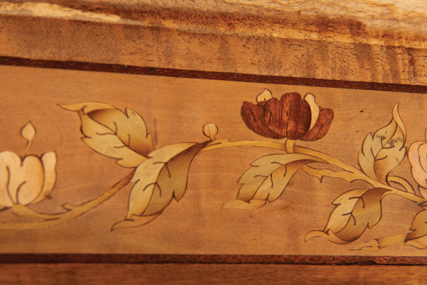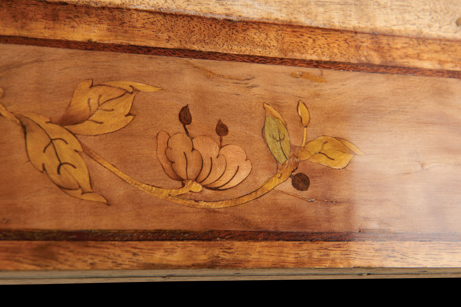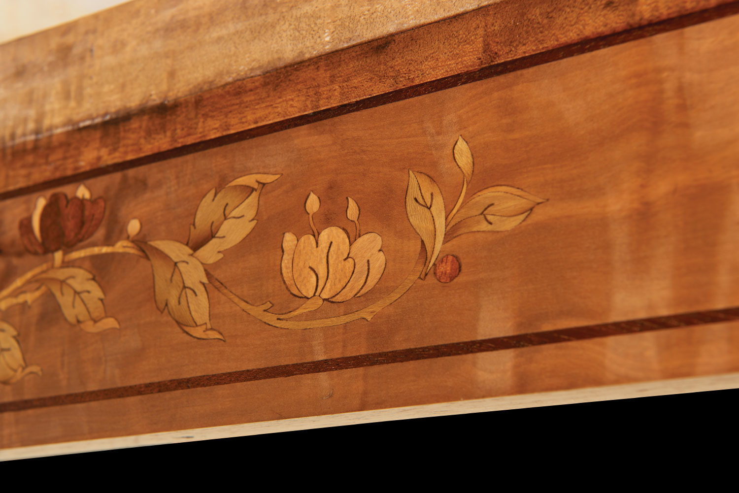 Wheathills has been commissioned to restore the marquetry damaged by the water ingress and to create show panels for fundraising to enable the full restoration of this wonderful example of a Pullman train.