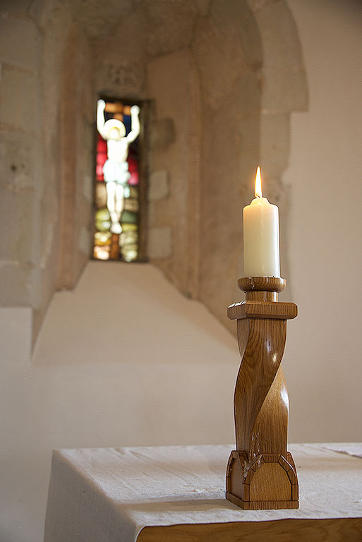 Here are images of the designs for the altar table, candlesticks and the new font cover. Each piece, created in solid English oak has been designed to reflect an element of the story of St Leonard, the patron saint of prisoners and of pregnant women.
