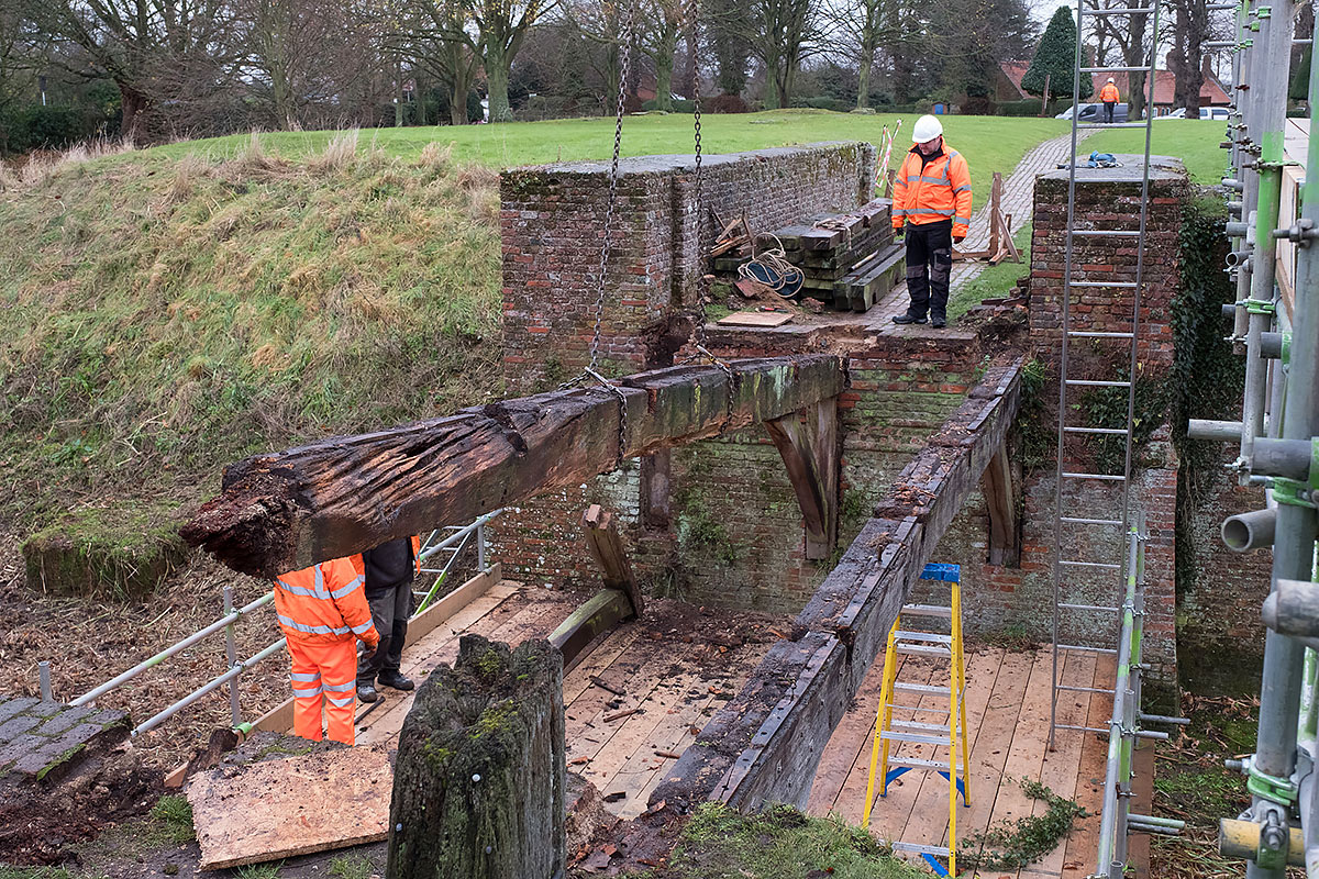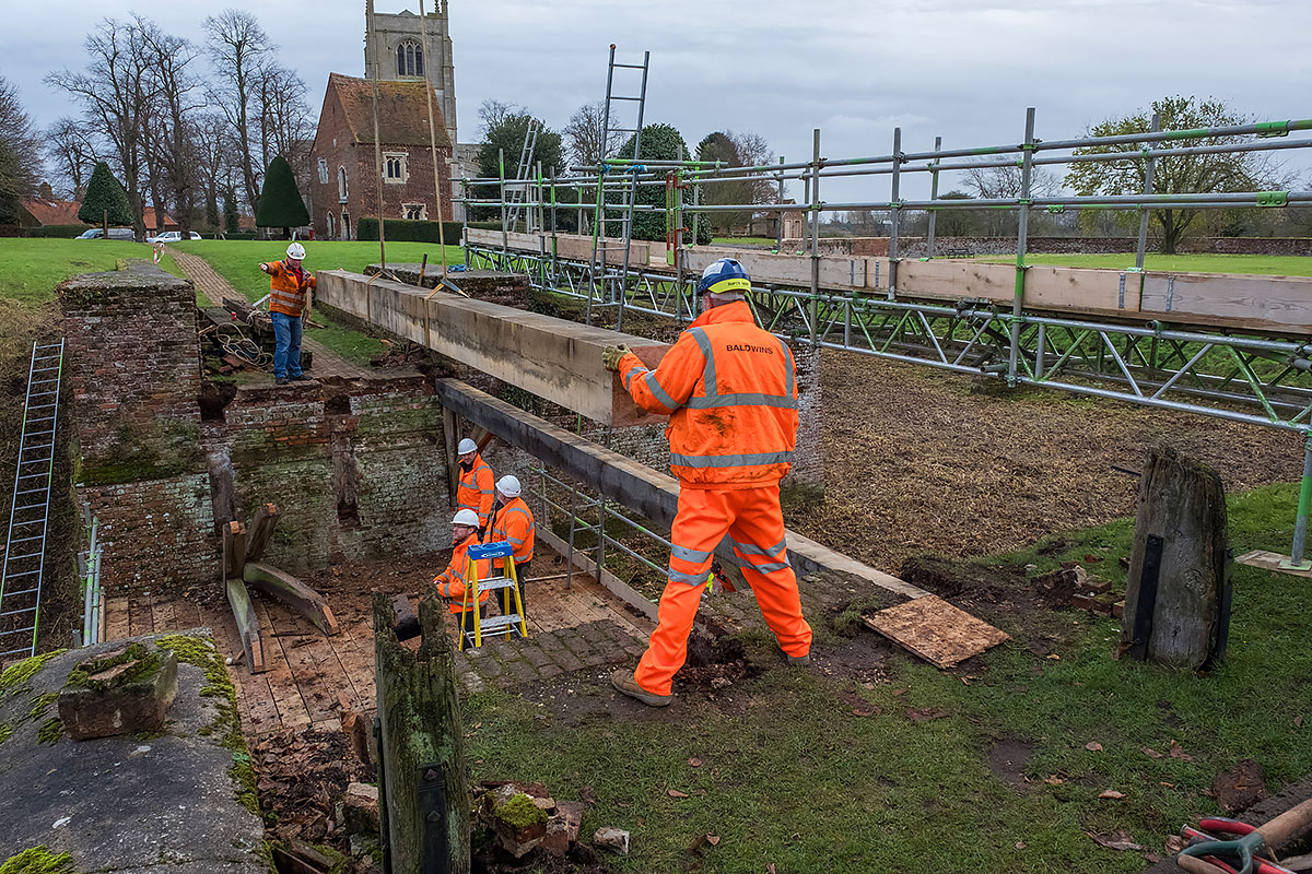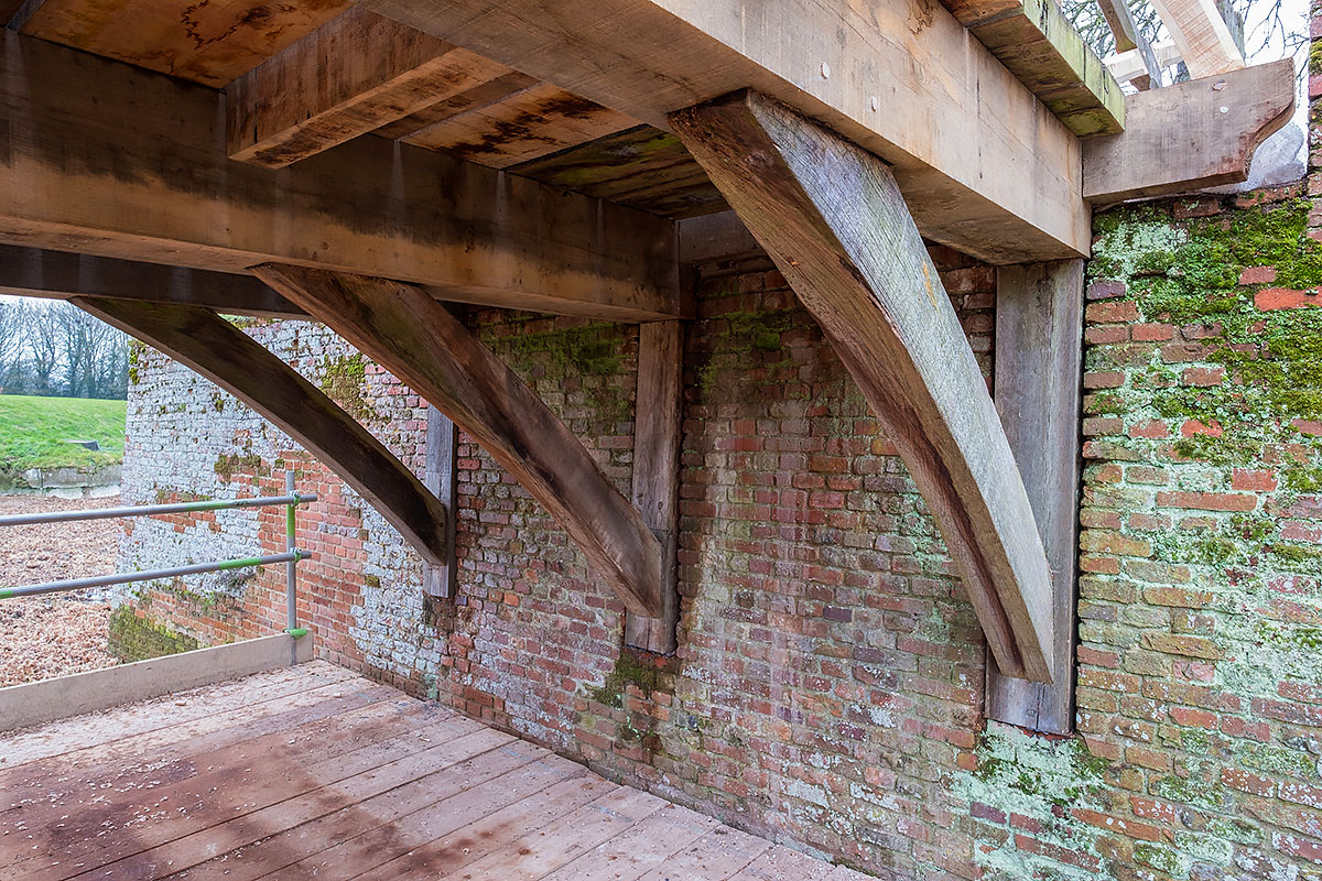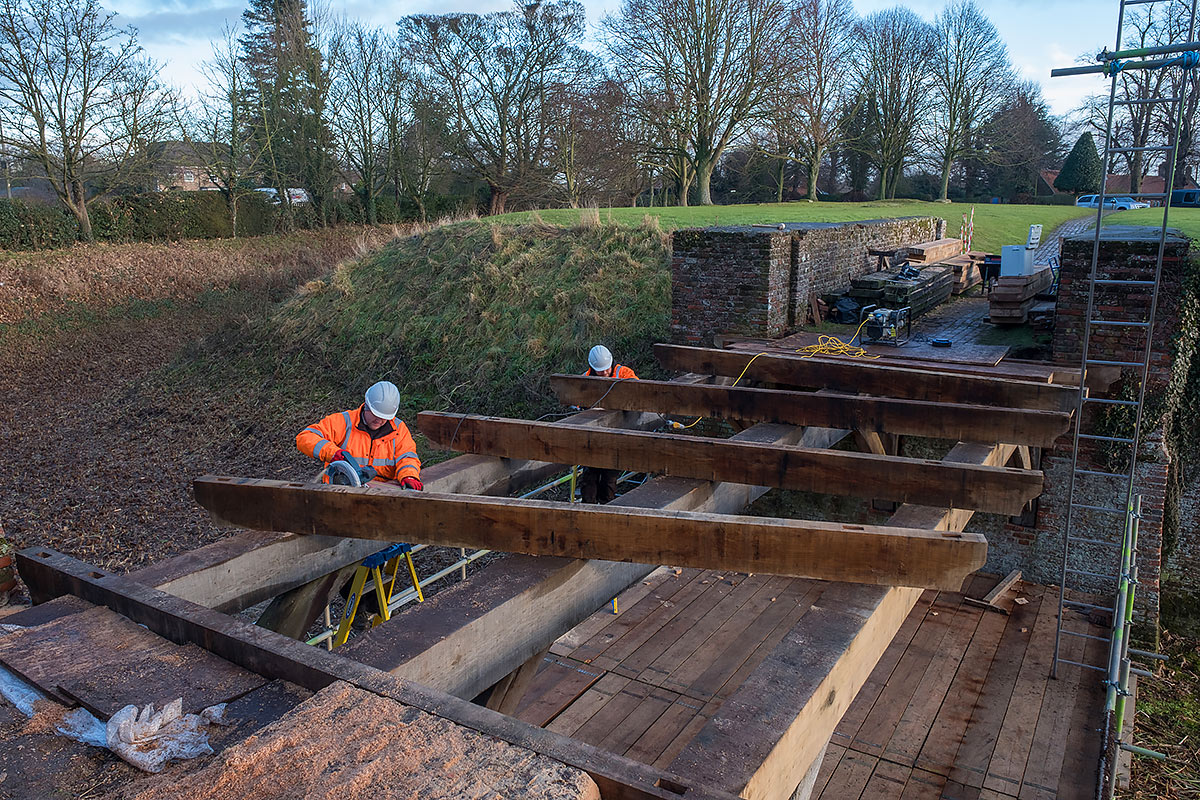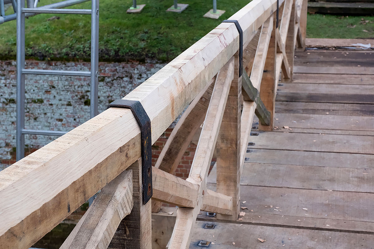 We have successfully completed the restoration of a third moat bridge at Tattershall Castle in Lincolnshire. This project came with many challenges; not least that it required the removal and replacement of three and a half tonnes of English oak beams.