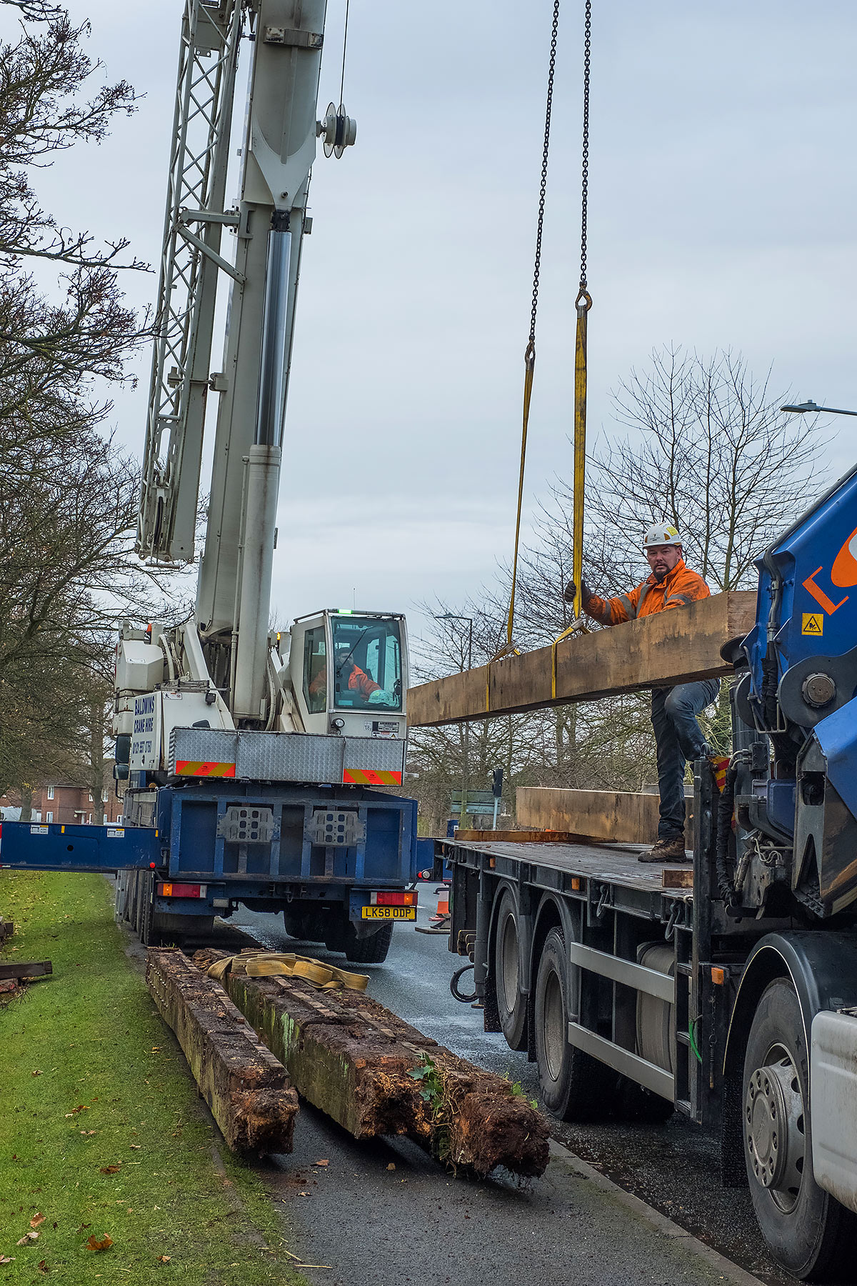 Our action plan required great deliberation and it initially involved closure of the main Grantham Road, some traffic management and notices to air traffic control that flight paths would be compromised for six hours while two articulated crane lorries plus a mobile crane - which out towered the castle itself, were put into place on the main road. Phew! Work was then able to commence with all the equipment and a seven-strong team of men. It was finished on time with a minimum of further fuss.