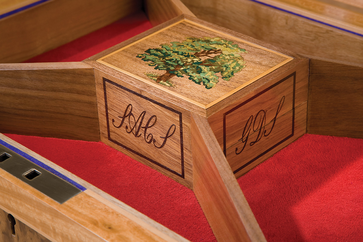 On receiving this promise Box to mark his 50th birthday, the Major was greatly intrigued by its mysterious key. It was not until several weeks later, that the purpose of the gift became clear during a visit to Wheathills with his wife. Following this period of great anticipation and excitement for the couple, the Wheathills team worked with them to design this magnificent memory box.